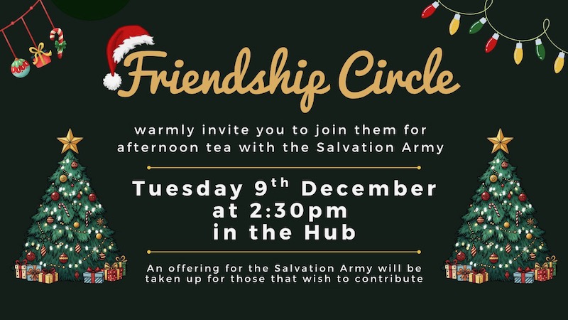 Do you enjoy the company of others, but prefer small, quieter gatherings? Then the Friendship Circle might be your cup of tea! A warm welcome is waiting for you in the church hall on various dates throughout the year. Around 30 to 35 people gather, usually on a Tuesday afternoon from 2.30 – 4.30pm, to hear from invited speakers and to join in singing hymns of praise.